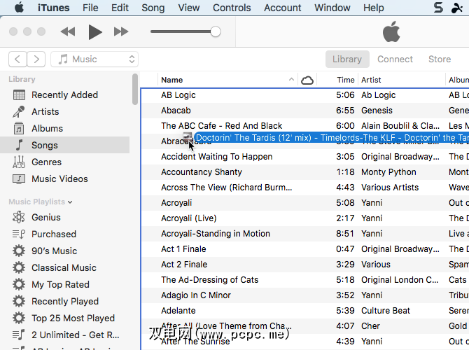 ~/Music/iTunes/iTunes\ Media/Music/.如果在 iTunes>首选项>高级中启用了保持iTunes Media文件夹组织性选项,则可以使用制表符完成导航到艺术家,专辑,然后是歌曲。启用此选项后,歌曲将从曲目编号开始。