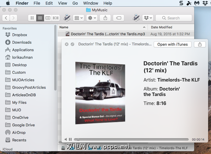 afplay /Users/lorikaufman/Music/MyMusic/Doctorin\ The\ Tardis\ -\ Timelords\ -\ The\ KLF.mp3 &您不必使“终端"窗口保持焦点,甚至不必使窗口保持打开状态。您可以关闭终端窗口,然后继续播放音频文件。