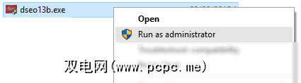一旦获得SECDRV.SYS文件的副本(通过下载或从c:\ windows \ system32 \ drivers目录中的文件进行复制) Windows Vista,7或8,并将其保存到Windows 10中的相同位置),通过右键单击 dseo13b.exe 并选择以管理员身份运行,运行DSEO工具。