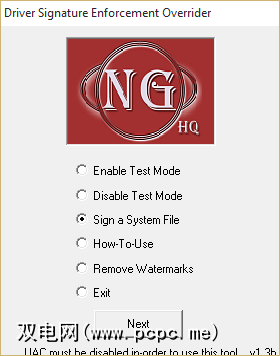 最简单的方法是采用驱动程序签名强制覆盖工具,该工具在以管理员身份运行时,使您能够对以前不受信任的文件进行签名。