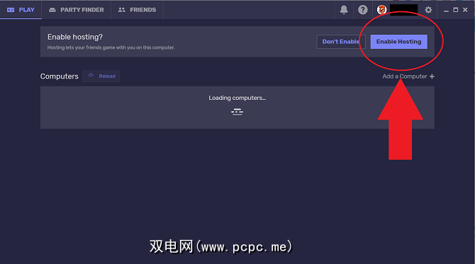 要在计算机上托管游戏,则需要启用托管功能。首次登录该程序时,通常在窗口顶部有一个启用托管的选项。