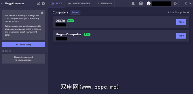 在“聚会查找器"选项卡下,有可以加入Parsec的可用聚会列表。社区。 但是,如果您想和朋友一起玩,请访问“播放"标签。他们的PC将在此处列为可用的连接。