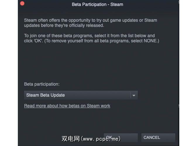Remote Play Together目前处于beta,因此,为了一起访问远程播放,您需要更新Steam客户端以访问beta客户端。打开Steam之后,转到 Steam>设置>帐户> Beta参与>更改。进入Beta参与– Steam菜单后,从下拉菜单中选择“ Steam Beta更新"。然后,您可以选择“确定"关闭该窗口。
