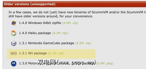 首先,您要下载适用于Wii的ScummVM。如果有的话,您可以从Homebrew浏览器中安装它,尽管最终版本比可用版本旧。