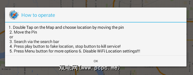 从列表中单击 FakeGPS ,然后选择启动应用。 >。 如何操作窗口将弹出,说明如何使用它。仔细阅读说明,然后单击确定以关闭窗口。