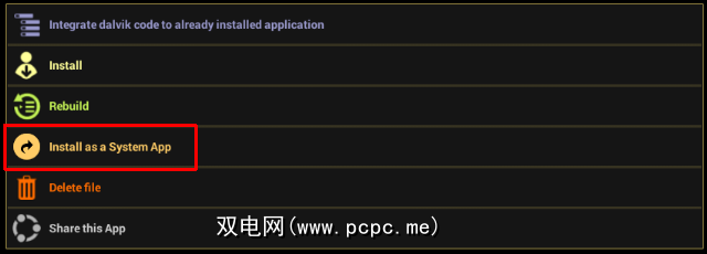现在,在Lucky Patcher中,转到重建并安装在右下角,然后转到 sdcard> Windows> BstSharedFolder 。在此处,选择用于FakeGPS的 APK文件,然后选择作为系统应用程序安装。单击是进行确认。