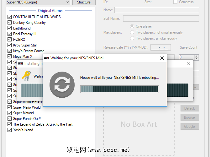 如果有任何问题,请等待SNES Mini重新启动并重复该过程。成功安装后,单击确定。