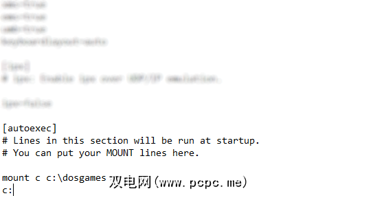 输入以下内容,保存并关闭配置文件。下次运行DOSBox时,驱动器将自动安装。