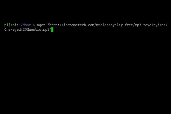 import RPi.GPIO as GPIOimport pygame.mixerimport timedef activeSetup(): global active active=0 print("Currently Not Active")def activeState(): global active if active==1: active=0 GPIO.output(7,GPIO.LOW) print("Currently Not Active") elif active==0: print ("Activating in 10 seconds") for x in range(0,10): GPIO.output(7,GPIO.HIGH) time.sleep(0.5) GPIO.output(7,GPIO.LOW) time.sleep(0.5) active=1 GPIO.output(7,GPIO.HIGH) print("Currently Active") else: returndef watchDoor(): global playing playing = False while True: if active==1 and GPIO.input(15)==1 and playing == False: playing=True pygame.mixer.music.play() if GPIO.input(13)==1: print("Stop button pressed: Exiting") pygame.mixer.music.stop() break if GPIO.input(11)==1: activeState() time.sleep(0.5)GPIO.setmode(GPIO.BOARD)GPIO.setup(7, GPIO.OUT,initial=GPIO.LOW)GPIO.setup(11,GPIO.IN)GPIO.setup(13,GPIO.IN)GPIO.setup(15,GPIO.IN)activeSetup()pygame.mixer.init(44100,-16,2,1024)pygame.mixer.music.set_volume(1.0)name = "One-eyed Maestro.mp3"pygame.mixer.music.load(name)print("Loaded track - "+ str(name))while True: if(GPIO.input(13)==1): print("Stop button pressed: Exiting") pygame.mixer.music.stop() break if(GPIO.input(11)==1): activeState() time.sleep(0.5) if(active==1): watchDoor() breakGPIO.cleanup()如果您在此处向下滚动以立即获取完整的代码,请记住,您仍然需要将音乐下载到Pi上以用于它可以正常工作!
