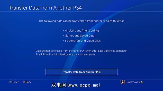 Sony确实希望您购买他们的新游戏机,而且他们正在尽可能轻松地移动旧游戏机。数据通过有线以太网连接传输到新计算机上。只需转到新控制台上的设置>系统>从另一个PS4传输数据开始该过程。