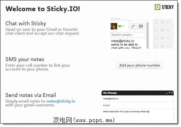 Sticky.io (测试版)是第三方网络应用程序,我认为它可以将您的聊天客户端(例如Google Chat)变成一个备受秘书注意的笔记。这个小应用程序可让您在阅读电子邮件时做笔记。您也可以将笔记通过电子邮件发送给Sticky.io,以备后用,或者如果您确实在旅途中–只需通过短消息将其发送出去即可。