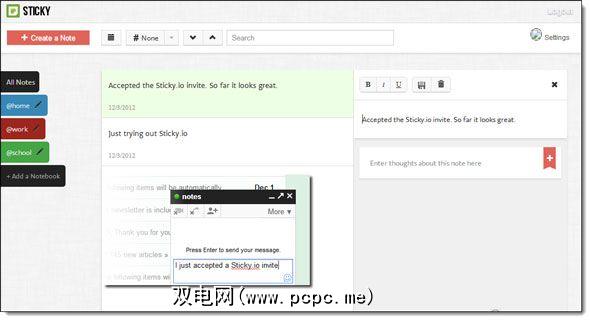 首次使用Gmail帐户登录时,Sticky .io将邀请发送到同一帐户的聊天框。接受它,您就很好了。在Sticky.io进行“聊天"时输入的所有注释都会自动保存在Sticky.io帐户中。在这里,您可以通过详细地整理笔记(例如,可以链接到更多外部内容),然后将它们分组到特定的自贴标签笔记本中。