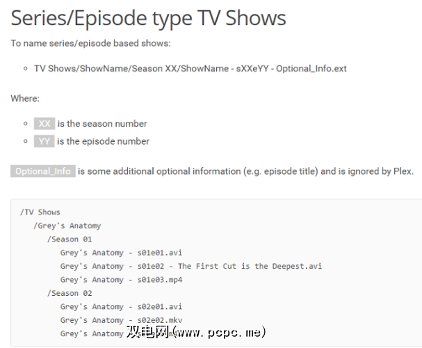 有关如何命名每种单独内容类型的详细信息,请参见Plex网站。