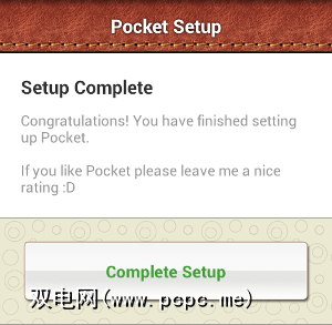 我选择了现有的Dropbox帐户,Pocket让我直接在应用程序中输入了用户名和密码(大多数应用程序都没有启动浏览器)。然后就是这样: