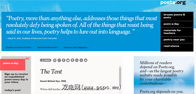 如果您熟悉《 诗歌》杂志,那么您会喜欢诗歌基金会的网站。作为该杂志的发行商,该网站是完美的在线伴奏。浏览诗歌或按类型过滤。您还可以阅读特定的诗人,查看作品集并查看有用的文章。