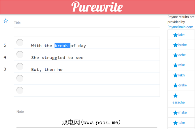 PureWrite在底部包括一个音符部分,并通过双击您自己的任何单词来押韵。您还可以创建一个免费帐户来保存您的物品。