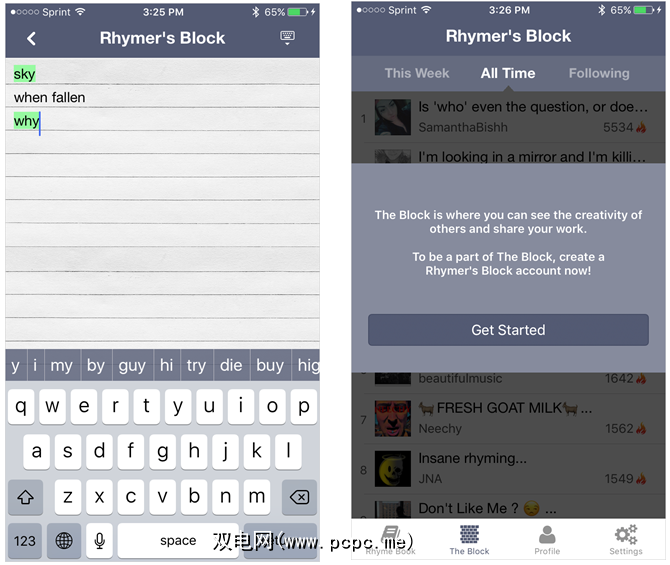 另一个简洁之处iOS的诗歌应用程序是Rhymer's Block。使用此工具,您可以接收实时押韵建议和近韵,复习词频分析并与应用社区共享您的工作。该应用程序还可以离线运行并提供云同步。