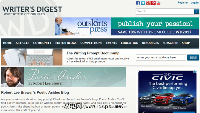 “作家文摘"网站也因其杂志而闻名。但是许多人并不知道有一个专门针对诗人的相关博客,作者是罗伯特·李·布鲁尔(Robert Lee Brewer),名为Poetic Asides。这是一个参观诗歌提示,诗歌形式的详细信息和有用的文章的好去处。