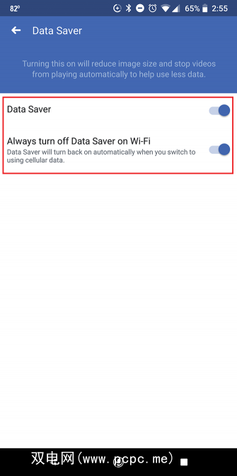 Facebook提供了一个一键式选项来减少数据使用量。您还可以深入研究该应用程序的设置以进行更多控制: