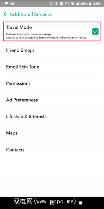 Snapchat是另一个具有一键式解决方案的应用程序,可以保存数据。其旅行模式通过阻止内容不在Wi-Fi时自动在后台加载内容来防止应用使用过多数据。但是该设置是隐藏的,因此很容易丢失。