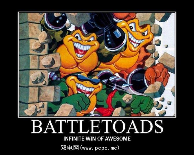 Battletoads ,一种拍子一款以极度困难着称的NES上的游戏,于1991年推出。该游戏以皮肤状态命名的三只拟人化蟾蜍(Rash,Zitz和Pimple)作为主角,旨在与 Teenage Mutant Ninja Turtles 竞争。游戏。