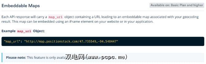 除了标准的正向和反向地理编码API端点外,positionstack还支持更多高级功能。例如,如果您位于基本免费套餐之上的任意一层,API响应将包含一个 map_url 对象,该对象指向要包含在您的网站中的可嵌入地图。<