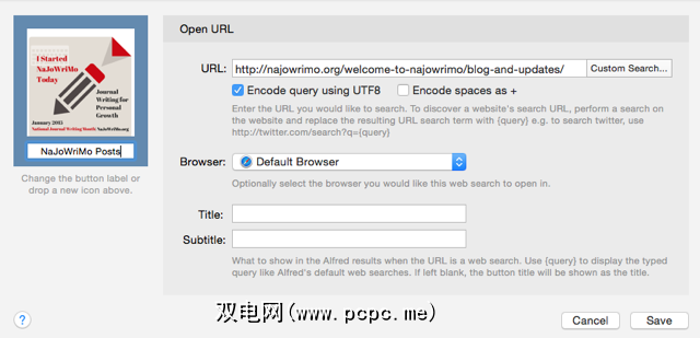 另一个类别可能是与您的个人博客相关的网站和应用程序。要添加类别,请单击Alfred首选项左下角的加号“ +"按钮。为您的类别指定名称和代表它的图标。