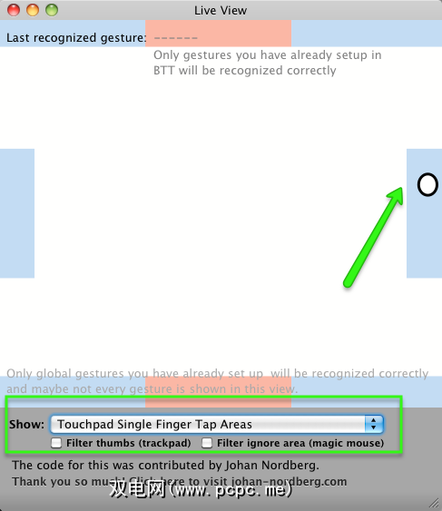 如果您需要更准确地了解触控板或Magic Mouse鼠标的各个侧面和各个部分,BetterTouchTool包含一个实时视图以显示最近执行的操作。这可能有助于解决您要设置的复杂手势的问题。