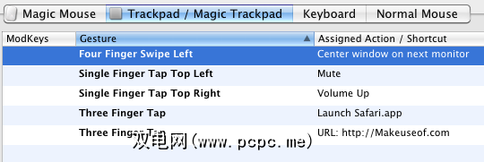 使用BetterTouchTool,您可以设置手势,例如打开文件或URL,使计算机休眠,创建新文件。在当前文件夹中,显示活动应用程序的窗口切换器,隐藏或显示所有窗口;如果您有两台显示器,则可以设置滑动手势以将主屏幕快速移至辅助屏幕。现在,这真是太贴心了!