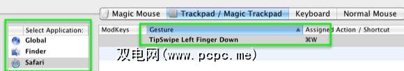 与SteerMouse一样,您可以将BetterTouchTool设置为仅执行特定操作在特定的应用程序中。因此,例如,您可以使用“ TipSwipe向左手指按下"来关闭Safari中的各个标签。