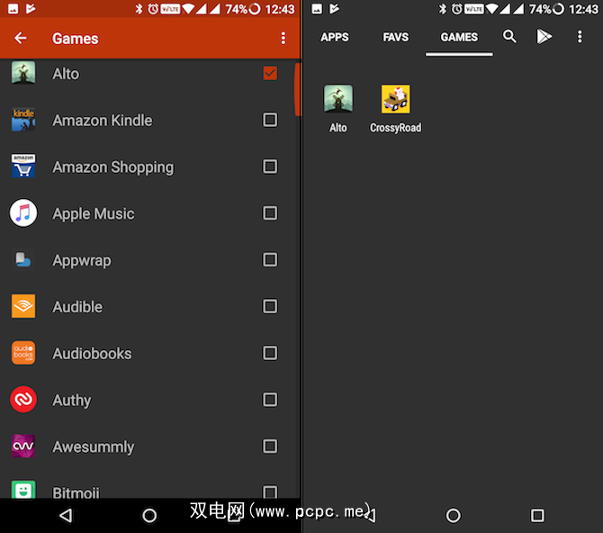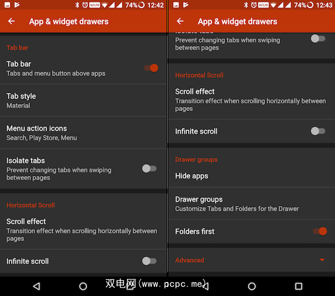 启用此功能的步骤有些复杂,但是一旦设置完成,应用程序抽屉中将有多个标签页,每个标签页都有不同的选项卡