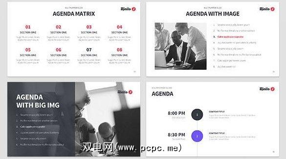 还有许多主题幻灯片可帮助您节省时间并保持人们的兴趣。从团队成员的生物设计到议程主题,您都可以按时间表自定义时间表,以设定对会议持续时间的期望。