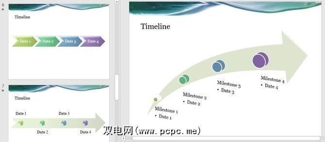 您还可以使用“时间轴"幻灯片为会议参与者提供直观的指示,以显示几天,几周,几个月,或年限,直到项目的预期完成日期为止。