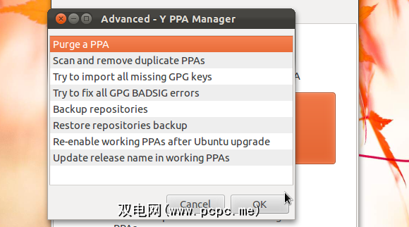 有一些高级选项。例如,您可以“清除" PPA,这意味着PPA及其内部的所有包装均被删除。您还可以备份存储库,这非常适合重新安装Ubuntu或切换到新计算机时使用。