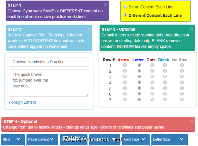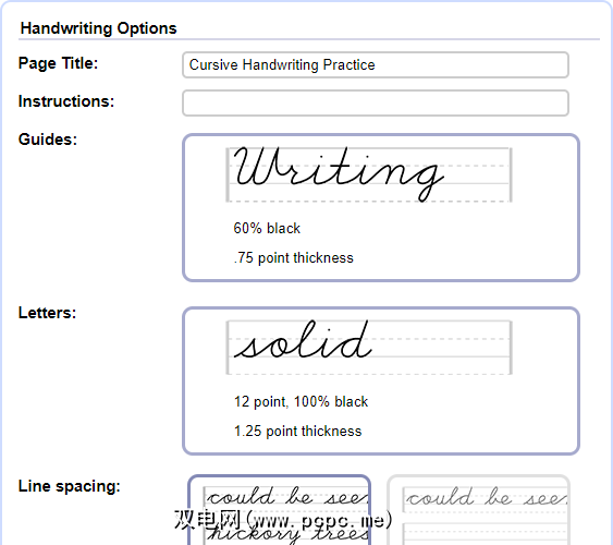 WorksheetWorks.com允许您为草书手写练习创建自定义工作表。