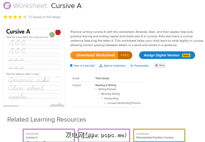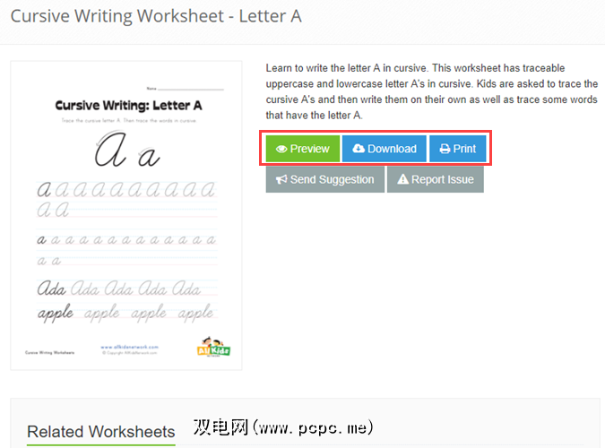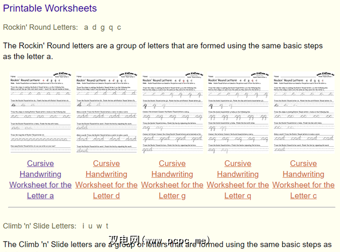 类似于k12reader.com和Education.com,Allkidsnetwork.com为每个字母提供免费的草书手写练习工作表。但是他们还提供了一些让学生练习使用他们学到的草书字母写句子的方法。