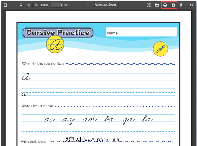 添加一个单词,一个名称和一个句子以及几个不同的单词,或工作表的段落。然后,将工作表发送到打印机,或将其打印为PDF。