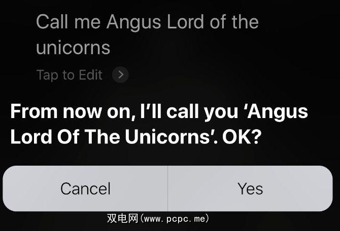 Just hold down the Home button, or Side button on the right side of the iPhone X and later, to activate Siri. Then you can say something like “Siri, call me Angus, Lord of Unicorns.” Whatever moniker you choose, Siri will call the victim that until they catch on and figure out how to change it back to their real name.