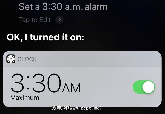激活Siri并说“设置闹钟:凌晨3:30。" Siri会设置一个警报来过早唤醒您的目标。