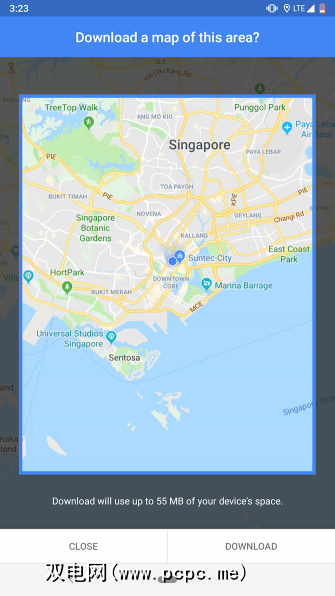 要获取某个位置的离线地图,请在手机上启动Google Maps应用并搜索您要去的地方。在其信息卡中,您会找到标有下载的选项。选中该区域,选择要下载的区域,然后再次点击下载进行保存。