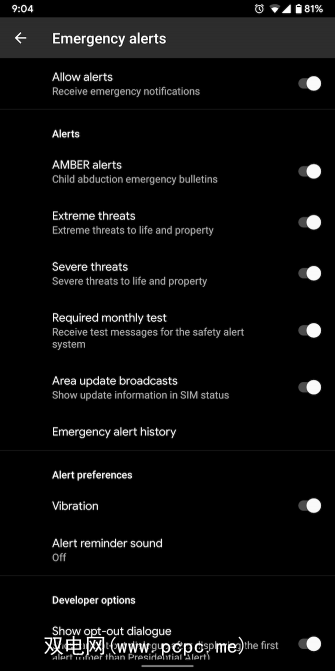您会在设置>应用和通知>高级>紧急警报下找到此选项。在这里,您可以选择要更新的警报类型,并选择是否要让手机振动。