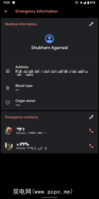 为此,请转到设置>关于手机>紧急情况信息。现在,填写必填字段,例如您的姓名,血型,是否是器官捐献者,过敏和紧急情况联系人。要查看已保存的数据,请在锁定屏幕上向上滑动,点击紧急情况,然后选择紧急情况信息。