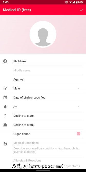 如果您觉得Android的本机紧急信息功能太有限且在锁屏上不容易看到,请尝试一个名为Medical ID的第三方应用程序。