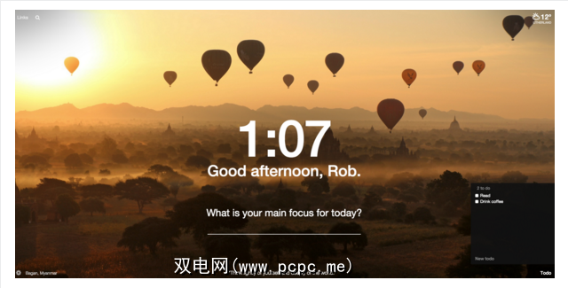 每天第一次打开新标签时,动量(一个免费的Google Chrome浏览器扩展程序)会询问您当天的重点。每次您打开新标签页时,系统都会提醒您该任务,一张令人惊叹的照片以及一个鼓舞人心的报价,以吸引您,然后再去滑雪道。