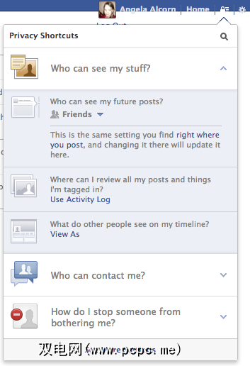 Facebook有一个新的隐私导航菜单,可通过小挂锁访问该菜单。 Facebook上任何页面右上角的图标。该菜单使您可以轻松检查隐私设置,访问活动日志以及访问完整的隐私菜单。这样一来,您还可以快速查看其他人的时间表,以验证他们可以看到的内容。