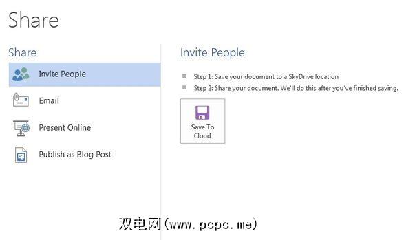 当然,您也可以轻松地从Office共享文档。首先,该过程包括上传到SkyDrive,然后选择您要与之共享文件的联系人。即使没有Office,他们也可以在Microsoft Web Apps中编辑和/或查看文档。其他选项包括通过电子邮件发送,在线呈现或作为博客文章发布。