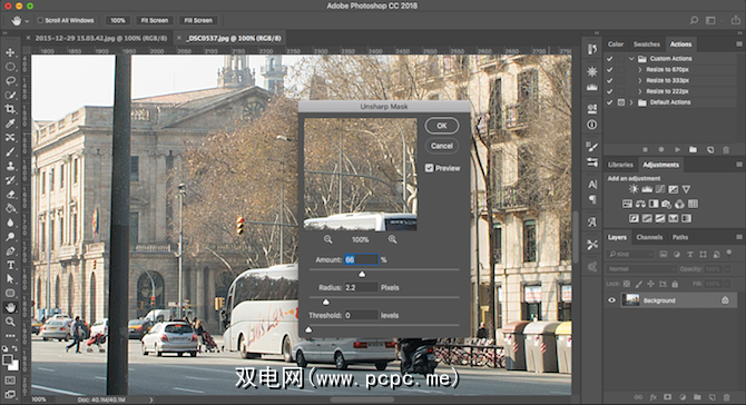 这是您需要尝试的东西。一个很好的起点是为具有很多细节的图像选择较高的 Amount 和较低的 Radius 设置,以及较低的 Amount 和较高的 Radius 设置,细节更少。