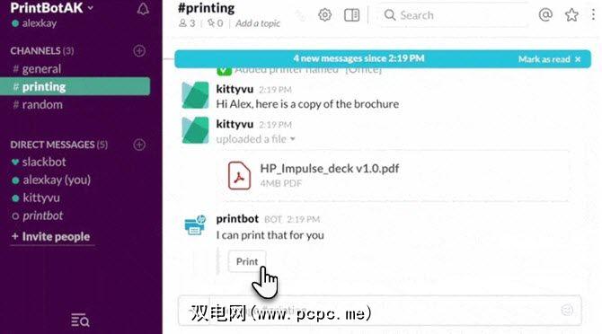 令人惊讶的是,团队协作工具没有快速的打印解决方案。也许没有必要,因为您可以使用浏览器自己的“打印"命令或下载文档,然后以旧的方式进行打印。 HP Bot for Slack 只是在办公室工作效率受到威胁时为您简化了操作。