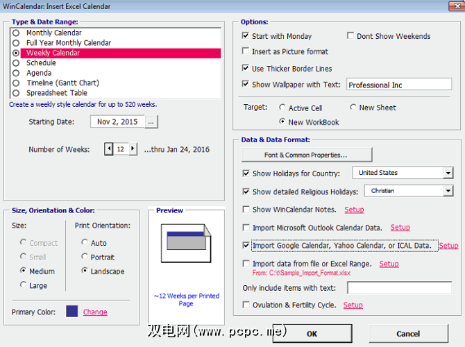 最重要的是,它可以将Outlook日历,Google日历,Yahoo日历,iCal日历和常规电子表格数据呈现为Word或Excel文件。