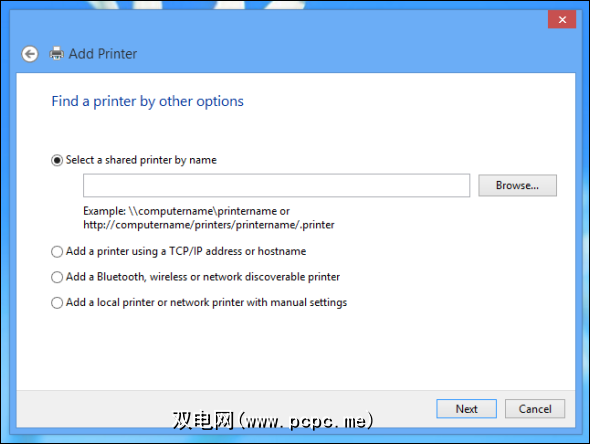 您可以添加网络打印机和Windows的早期版本。您添加的所有打印机将同时出现在台式机和现代环境中。